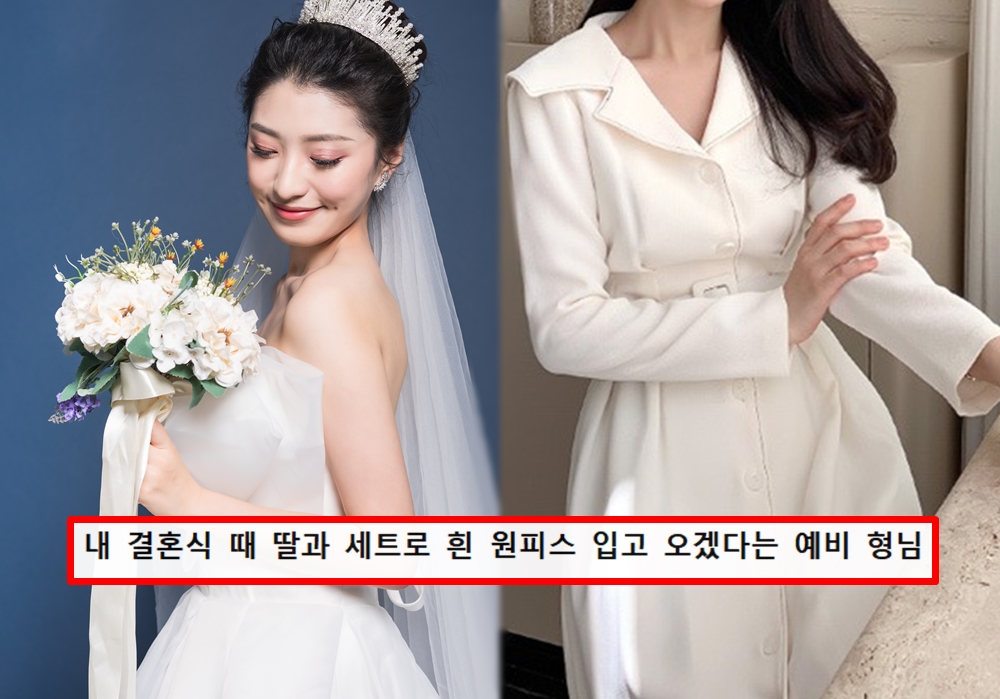 문제는 첫째 형의 딸이 화동을 해주기로 했는데 첫째 예비 형님이 아이와 세트로 하얀 원피스를 입고 오겠다고 한 것이었습니다. 물론 아이와 커플로 옷을 입고 싶어 하시는 건 이해하겠지만 결혼식에 하얀 원피스를 입고 오는 것은 A씨도 달갑지 않았습니다. 둘째 예비 형님도 원피스를 입고 오시겠다고 했습니다.