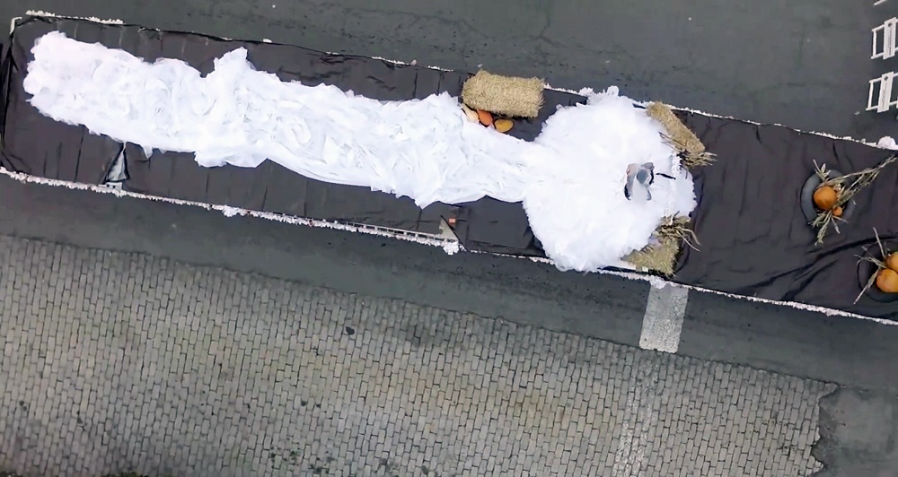 디자이너 산드라는 아이디어를 냈습니다. 바로 긴 대형 트럭에 신부를 싣고 결혼식장에 가는 것이었죠. 이에 산드라는 16미터 길이의 평상형 트럭을 구했습니다. 그리고 여기에 의자를 설치해 신부가 앉고, 트레인을 뒤로 늘어트렸습니다. 이에 타티아나는 결혼식장으로 무사히 이동할 수 있었죠.