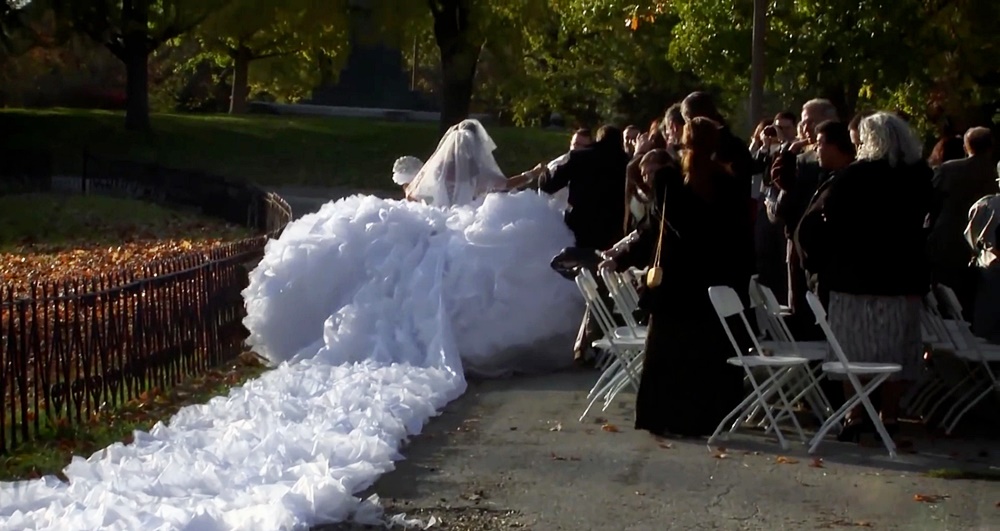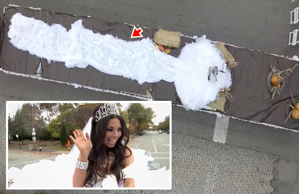 미국 미주리주 세인트루이스 출신의 타티아나(25)는 신랑 주키와 결혼을 했습니다. 그녀는 자신만을 위한 웨딩드레스를 특별히 제작했는데요. 드레스 디자이너 산드라와 함께 '꿈의 웨딩드레스'를 만들었습니다. 타티아나가 원하는 디자인은 바로 '긴 웨딩드레스 트레인'이었는데, 그냥 조금 넉넉한 수준의 길이가 아니라 엄청나게 긴 트레인을 원했던 것이죠.