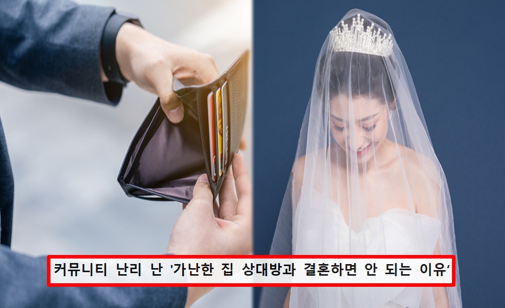'가난한 집 상대방과 결혼하면 안 되는 이유'라는 글이 커뮤니티에서 화제가 되고 있습니다.