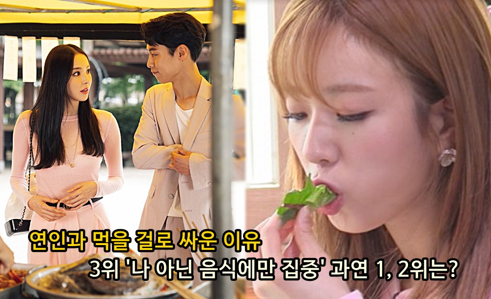 상대방이 아닌 음식에만 집중할 때 다툰다는 답변이 3위에 올랐습니다. 맛있는 음식이 나왔다고 해서 상대방은 신경도 쓰지 않은 채 허겁지겁 음식을 먹는다든지, 자신이 맛있는 부위를 독점해서 다 먹는 등 음식에 너무 집중하며 상대방을 신경 쓰지 않으면 상대방이 '데이트를 하러 나왔는지, 먹으러 나왔는지' 헷갈릴 수 있으니 상대방을 배려하고 대화하며 식사하는 습관을 기르는 것이 좋을 것 같습니다.