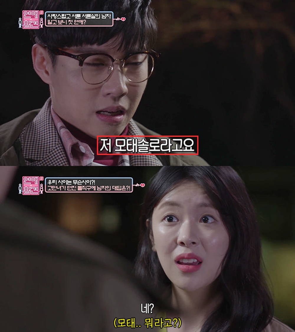 모태솔로는 왠지 모르게 답답할 것 같다는 응답도 있었습니다. 27%의 응답자가 이 답변을 내놓았습니다. 지난 2013년 방영된 SBS 리얼 예능 프로그램 <짝>에서도 모태솔로의 이런 모습이 방송에 공개되며 큰 화제가 되었는데요. 상대방의 기분이 언짢을 수 있는 농담을 계속해서 하고, 뭘 하든지 상대방에게 물어보고 했으며, 지나친 솔직함으로 상대방의 기분을 생각하지 않는 모습을 보였죠.