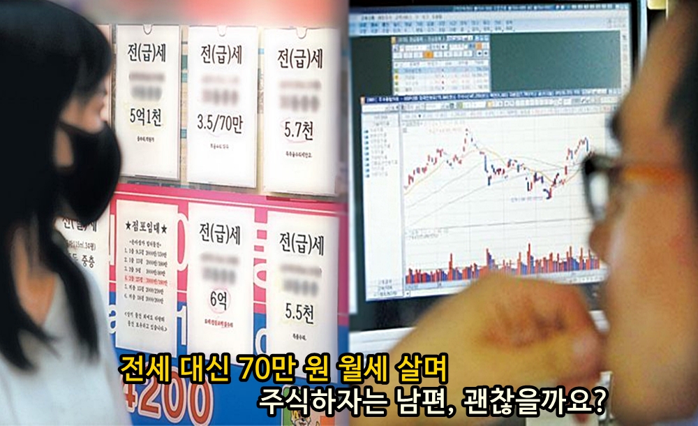 전세금 1억 원 빼서 월세 살고 남은 돈으로 주식하자는 남편. 과연 여러분의 생각은 어떠신가요?