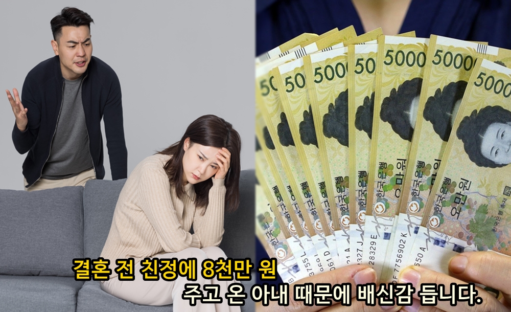 그리고 A씨는 더욱 충격적인 사실을 알게 되었습니다. 아내가 결혼자금이라 생각한 3천만 원만 놔두고 나머지 돈 5천만 원은 친정에 주고 왔다는 것이었습니다. 아내는 '결혼하면 이제 친정 부모님께 마음대로 뭐 해주기 힘들 것 같아서 결혼 전에 차도 사드리고 돈도 드리고 왔다'라고 말했죠.