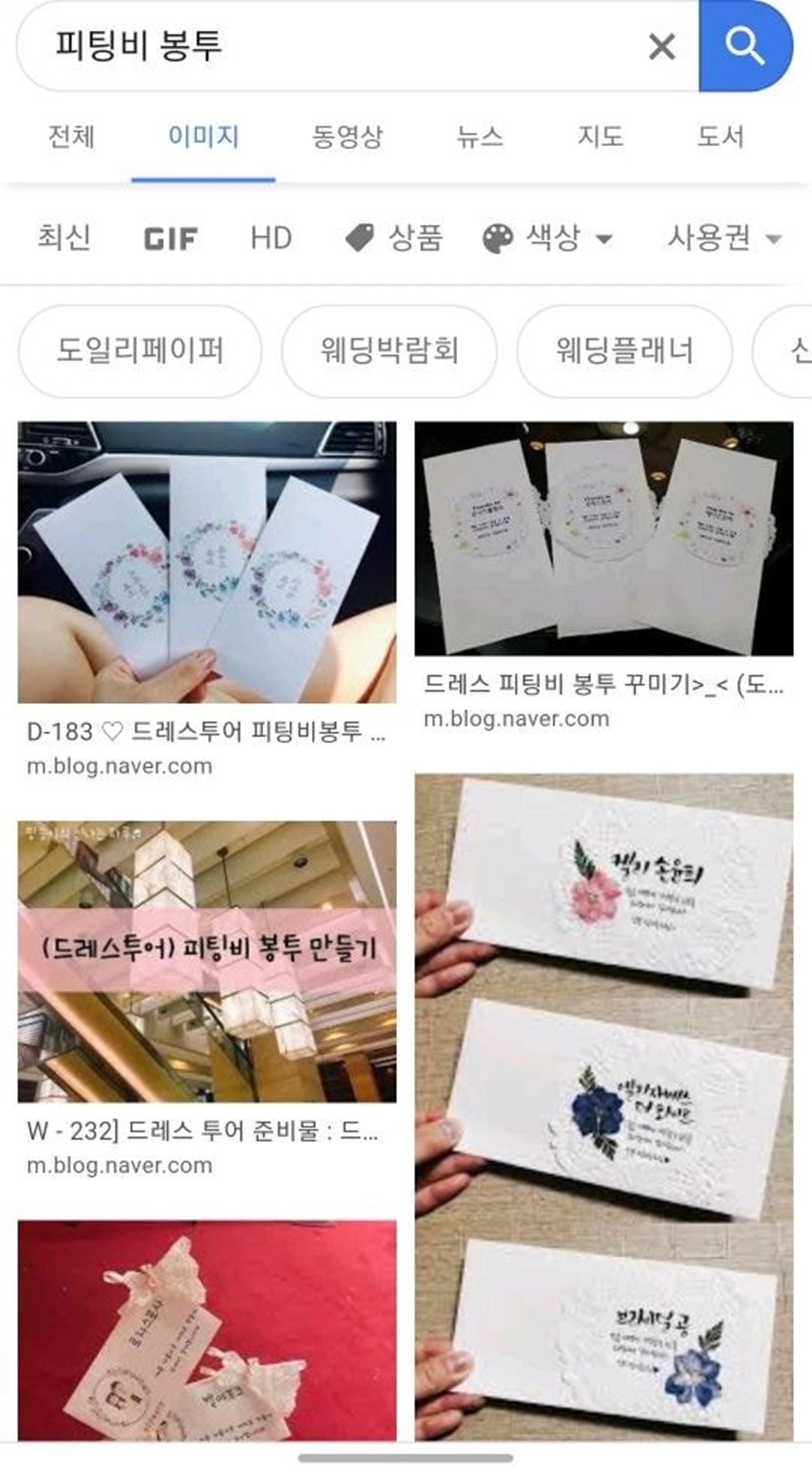 이 과정에서 피팅비는 현금으로만 받는 곳이 많이 있는데요. 예비 신부들은 정성스러운 봉투를 준비해 여기에 피팅비를 넣어 전달하곤 하죠. 피팅비 봉투에는 '예쁜 드레스 입게 해 주셔서 감사합니다' 등의 문구가 들어가곤 합니다. 인스타그램에도 자신이 제작한 예쁜 피팅비 봉투가 넘쳐나고 있습니다.