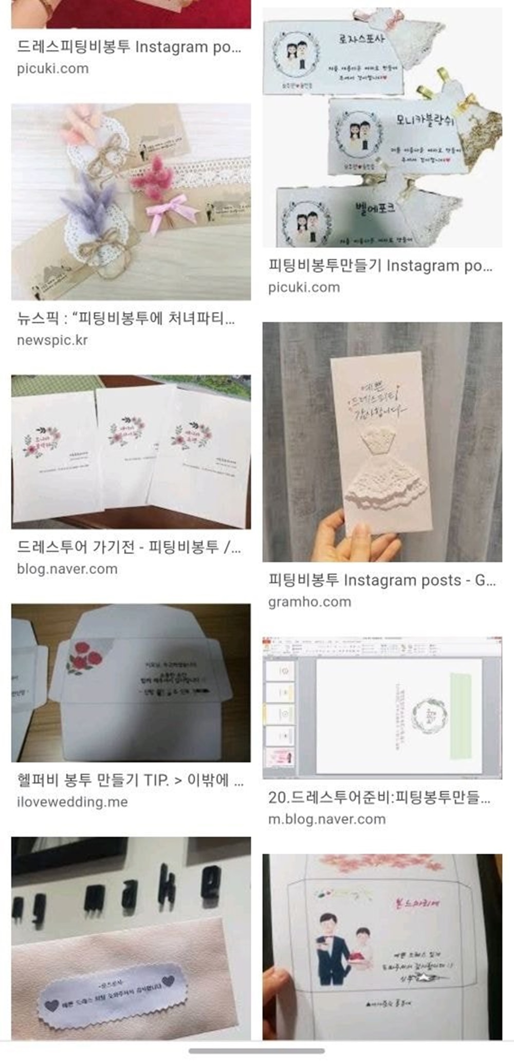 이 과정에서 피팅비는 현금으로만 받는 곳이 많이 있는데요. 예비 신부들은 정성스러운 봉투를 준비해 여기에 피팅비를 넣어 전달하곤 하죠. 피팅비 봉투에는 '예쁜 드레스 입게 해 주셔서 감사합니다' 등의 문구가 들어가곤 합니다. 인스타그램에도 자신이 제작한 예쁜 피팅비 봉투가 넘쳐나고 있습니다.